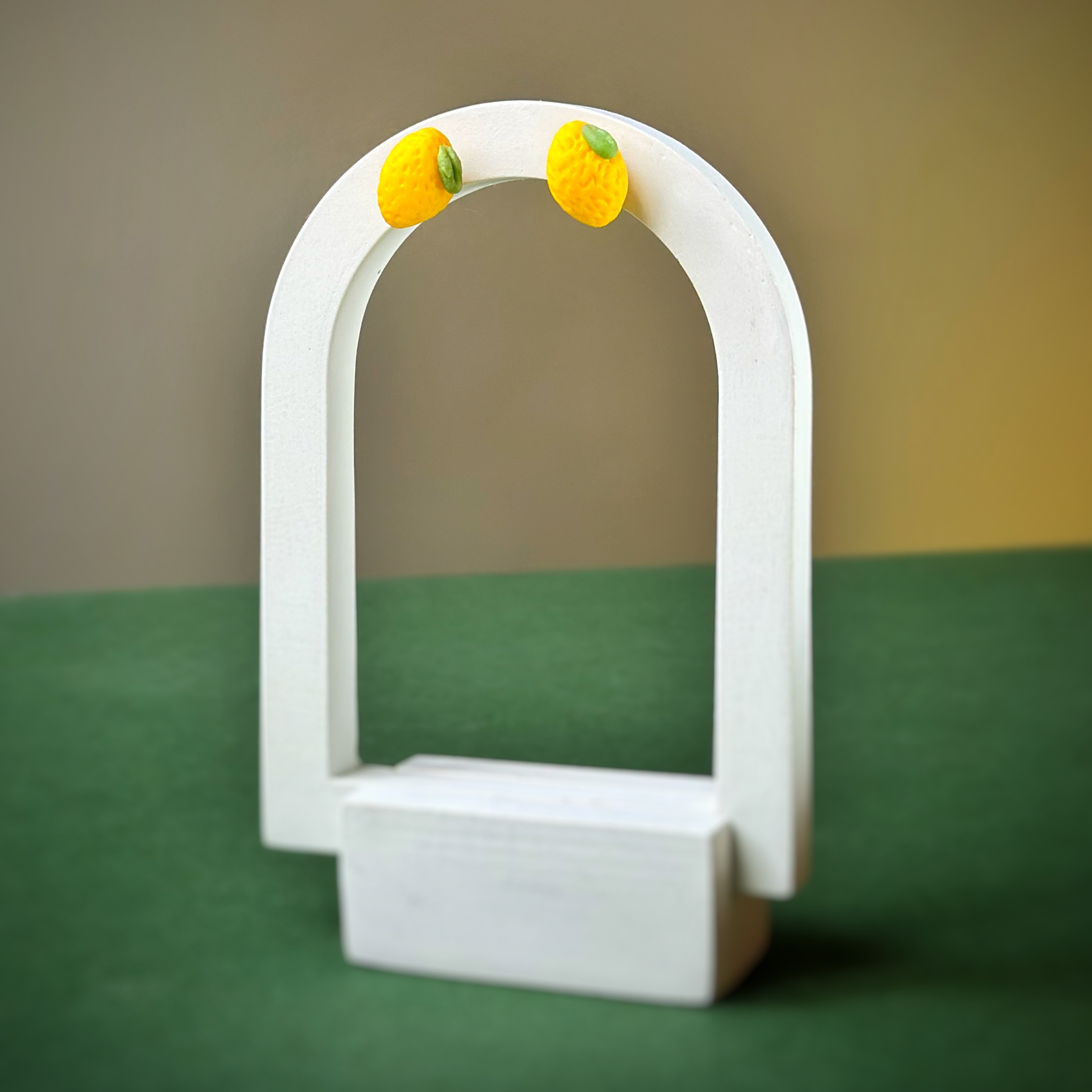گوشواره لیمو میخی ساخته شده با خمیر پلیمری هوا خشک